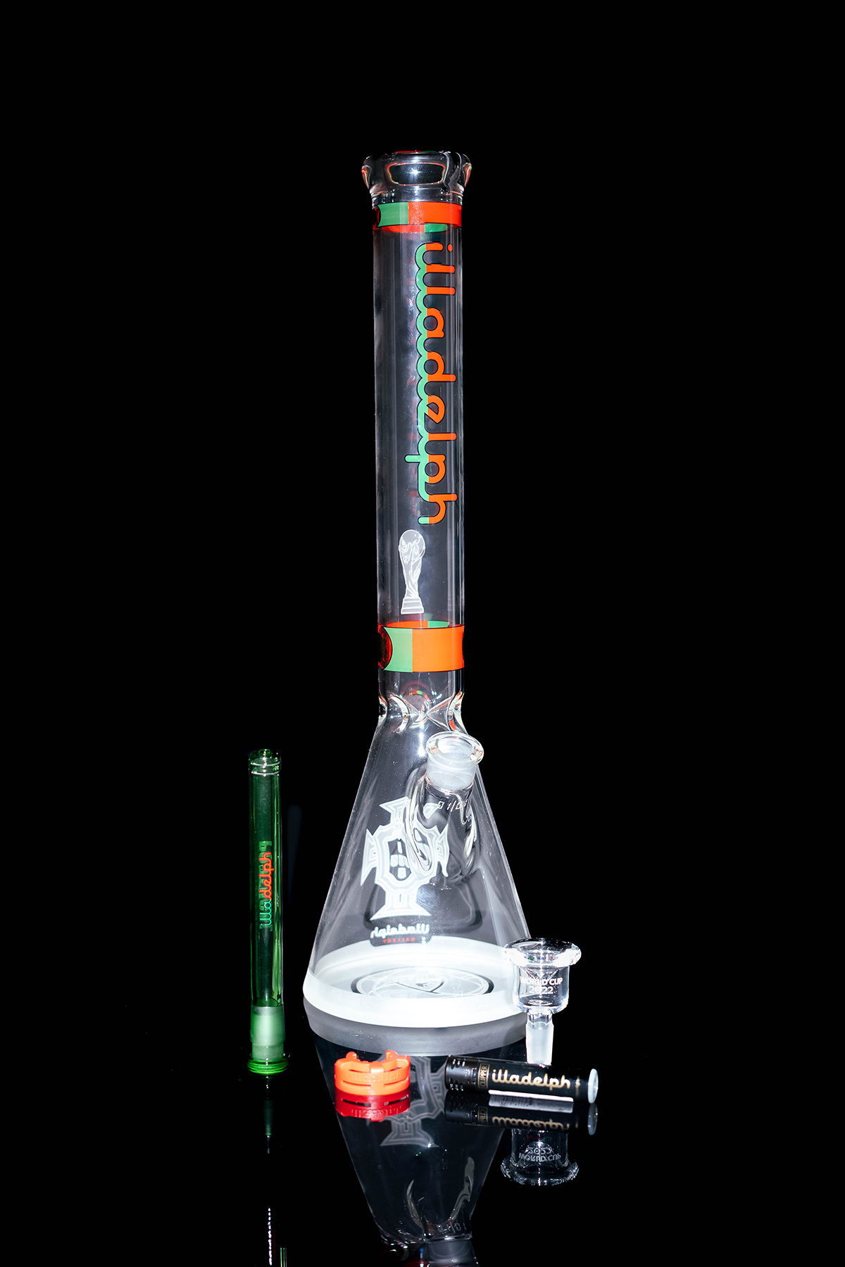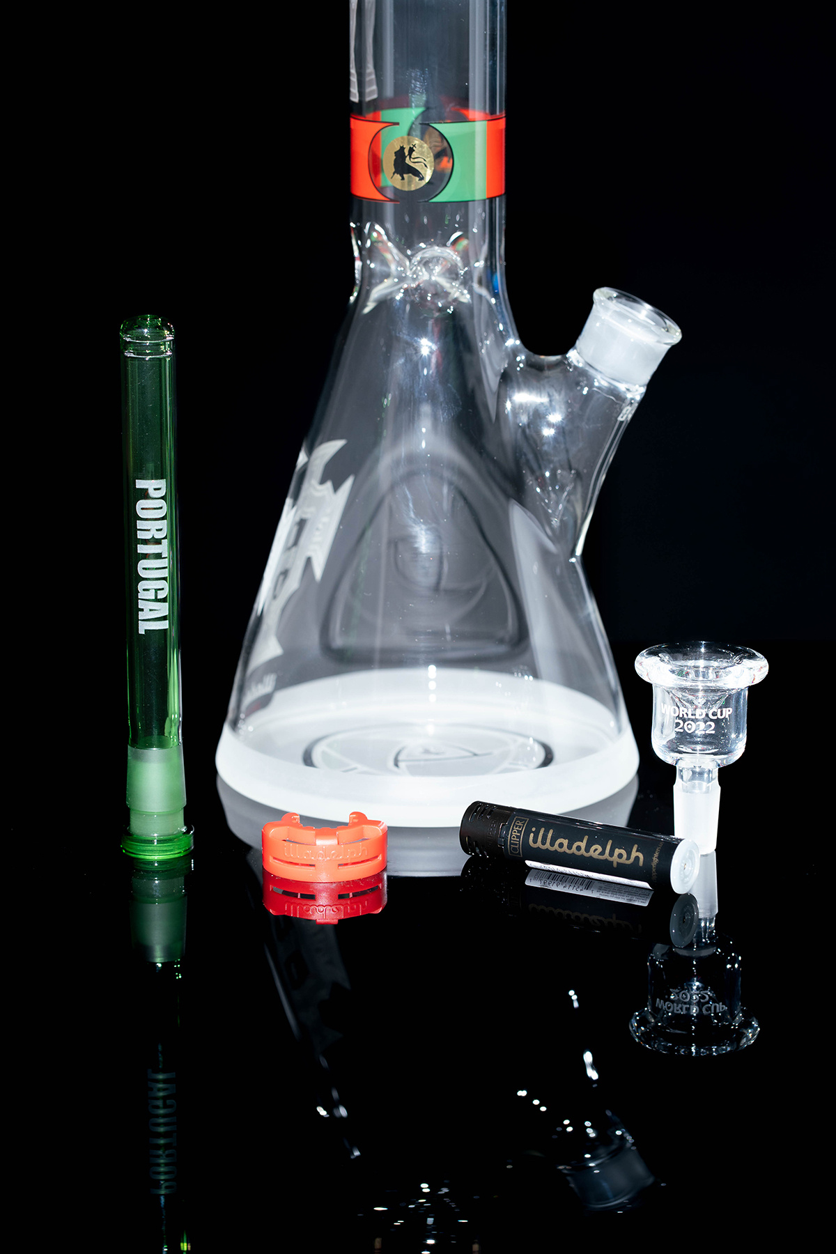 The Illadelph 1 of 1 FIFA World Cup 2022 - Portugal is a one-of-a-kind masterpiece, paying tribute to Portugal's soccer excellence. Handcrafted with precision and featuring intricate details, this limited edition water pipe captures the spirit of the FIFA World Cup, making it a prized possession for both glass collectors and soccer enthusiasts alike.