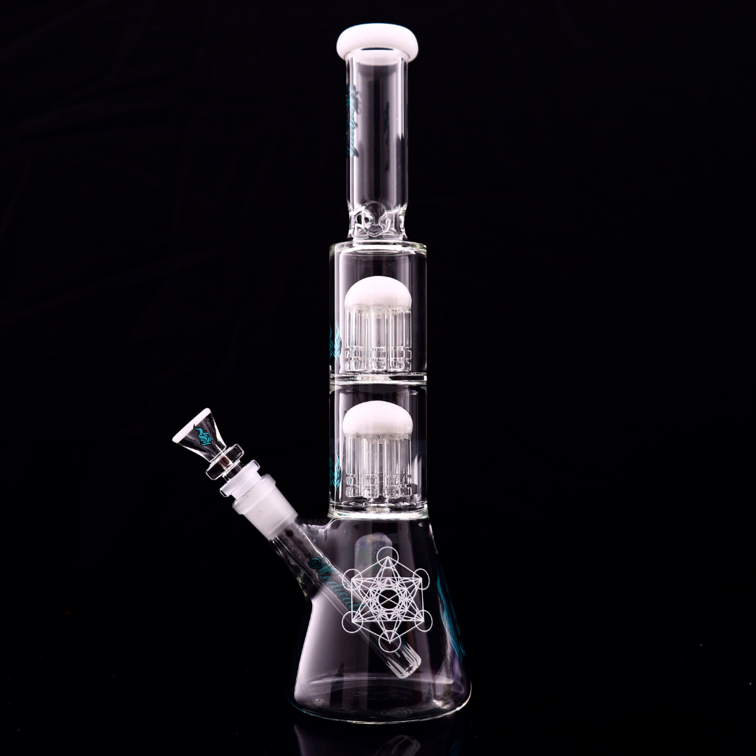 The Medicali Double 8 Tree Beaker features 2x 8 mini percolator trees with Medicali decals throughout.